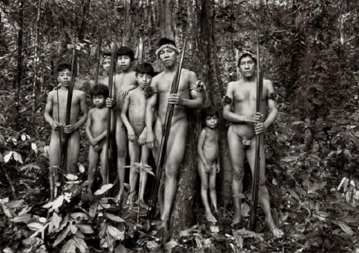 Standing Tall, Awá men and boys, in the Território Indígena Awá, in the Brazilian Amazon - Photograph by Sebastião Salgado