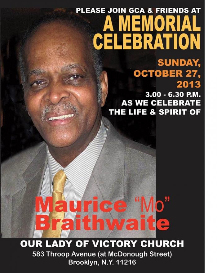 Maurice “Mo” Braithwaite Memorial Celebration By admin - October 18, 2013 0 112 FacebookTwitterPinterestWhatsAppEmail Maurice "Mo" Braithwaite Memorial Celebration Maurice “Mo” Braithwaite Memorial Celebration Related Posts:The Story Of Bing Serrão And The RamblersE. R. Braithwaite, author of "To Sir, With Love"Maurice "Mo" Braithwaite Memorial CelebrationNew York Kicks off its Celebration of Guyana’s 50th…