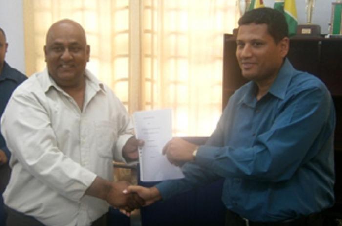 P.S. Collin Croal (right) handing over the Memorandum of Understanding (MOU) to Natural Globe Incorporated’s CEO, Mohamed Osman By admin - November 25, 2013 0 283 FacebookTwitterPinterestWhatsAppEmail Related Posts:Men who have played over a quarter of the Tests for their…Retraction of Recycling Plant Memorandum of Understanding -…Letter to Dr. Asha Kissoon of The New Movement Party.Management Fiasco at GPL Continues